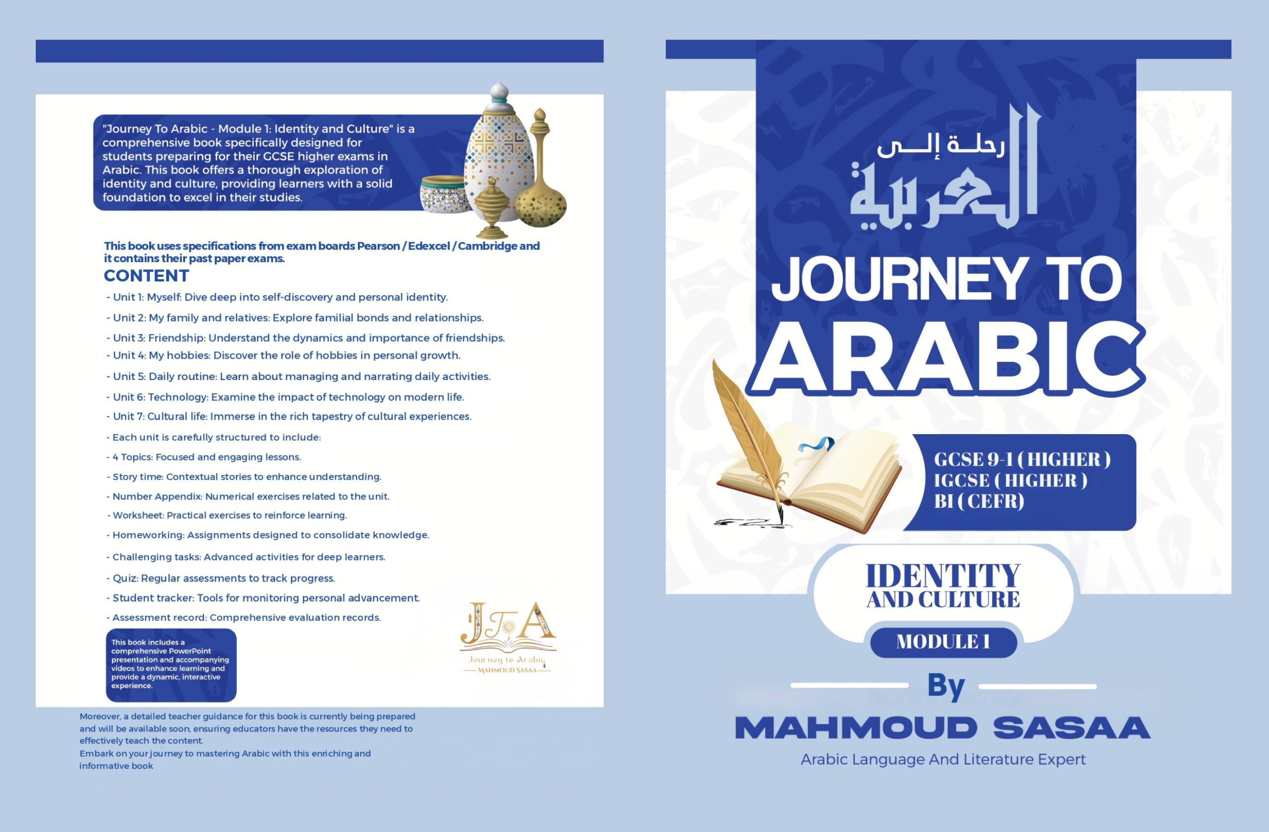 Journey To Arabic – Module 1: Identity and Culture is a B1-level book designed for GCSE/IGCSE students, covering identity, culture, daily life, and technology in Arabic. Each unit includes lessons, vocabulary, stories, exercises, quizzes, and tracking tools to ensure mastery. Integrated videos and PowerPoint presentations make learning engaging and effective, with teacher guidance coming soon.