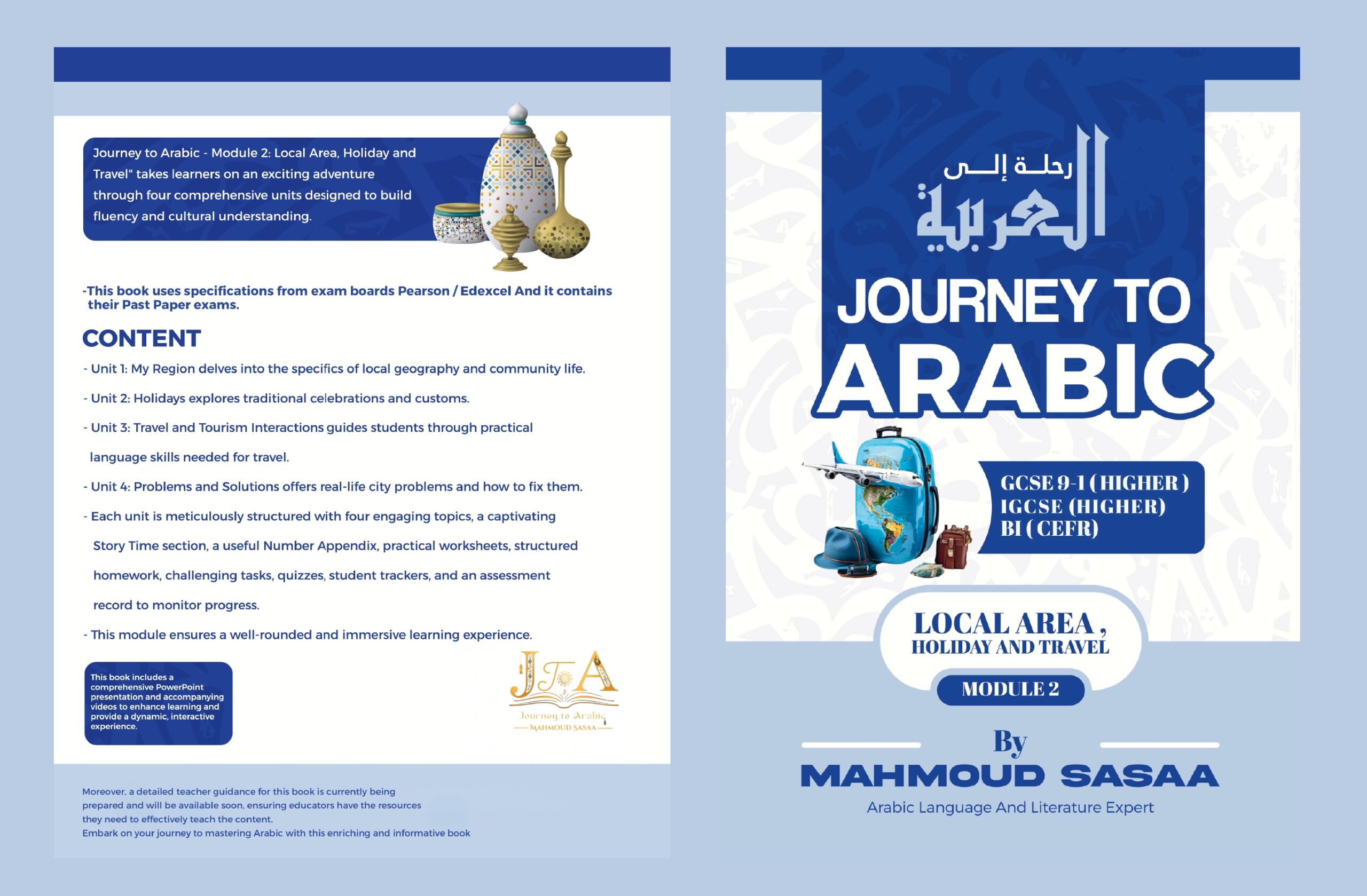 Journey To Arabic – Module 2: Local Area, Holiday and Travel is a B1-level textbook for GCSE/IGCSE students, covering regions, holidays, travel, and practical communication skills. Each unit includes lessons, vocabulary, stories, exercises, quizzes, and student tracking tools for complete mastery. Integrated videos and PowerPoint presentations make learning engaging, with a Teacher’s Guide coming soon.